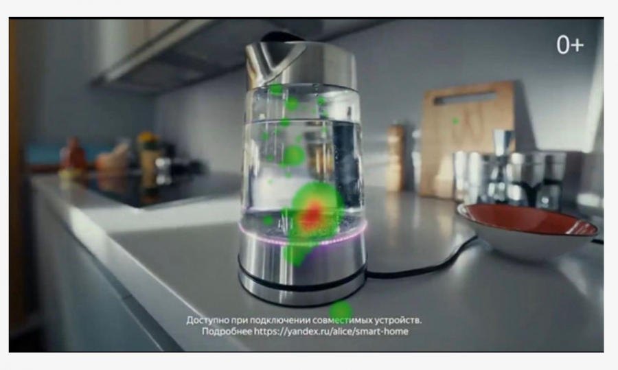 Ещё следует отметить, что мелкий белый шрифт про подключение других устройств бесполезен — он не читается респондентами. Часть надписи плохо видна на светлом фоне. И только при показе этой надписи в кадрах с чайником зрители взглянули туда, но прочитать всё равно не успели.