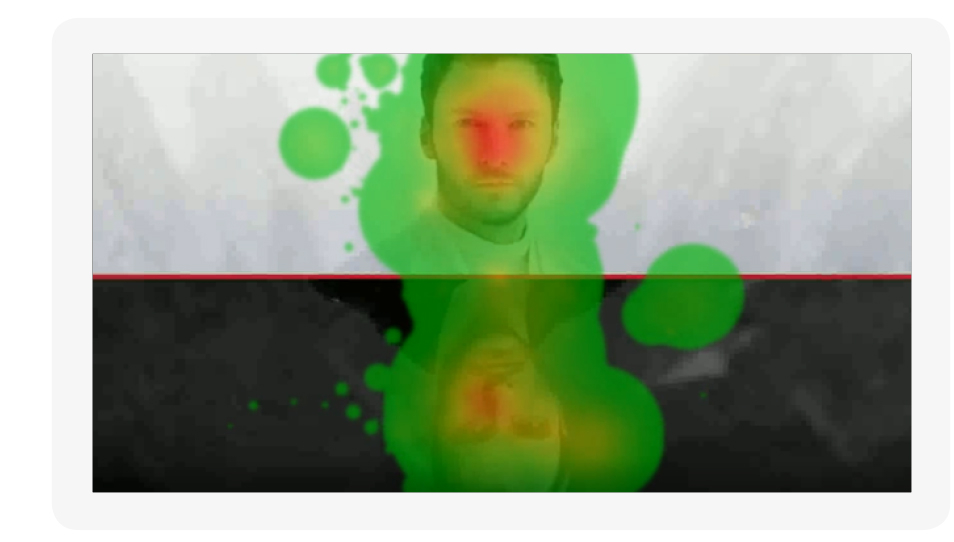 С середины второй секунды появляется лицо героя, которое вызывает положительную эмоцию. Через секунду зритель обращает внимание, что лицо отображается зеркально, но только на темном фоне. Мы видим повышение внимания — зритель пытается рассмотреть зеркальное отражение и распознать, что это то самое лицо.