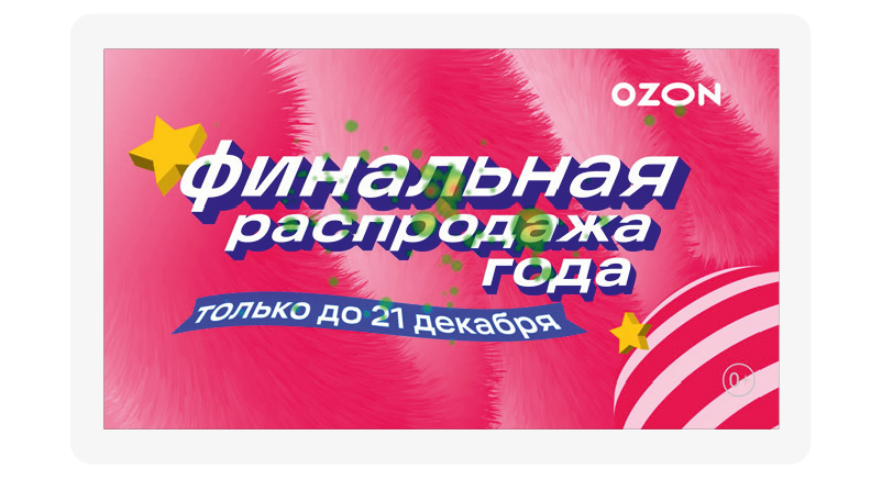 Одним из победителей новогоднего Нейровизора стал ролик Ozon, посвящённый итоговой распродаже. Здесь 4 звезды по интересу и эмоциональной вовлеченности, 2 звезды по вниманию и запоминаемости.