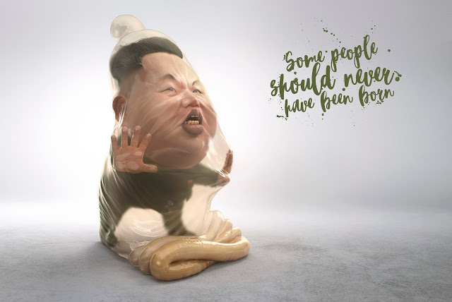 Художники Platinum FMD выбрали необычный способ показать свое отношение к главам США и Северной Кореи. Авторы проекта поместили политиков в презервативы, тем самым, показав, как можно уберечься от нежелательной беременности.