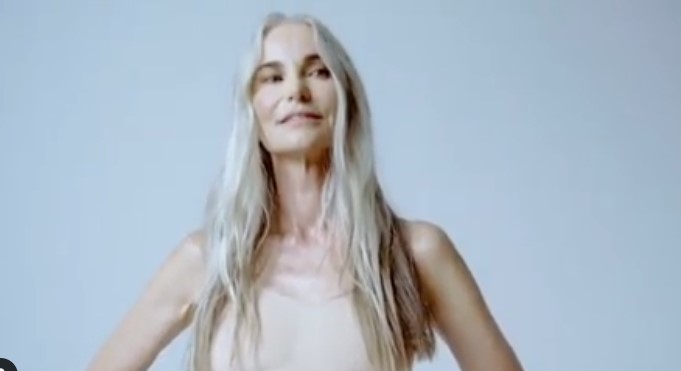 В Instagram Ким Кардашьян появилось видео с 58-летней немецкой моделью Аннет Марвельд, которая прорекламировала белье из собственной коллекции знаменитости под названием Skims. Для ролика модель примерила бра и корректирующие шортики.