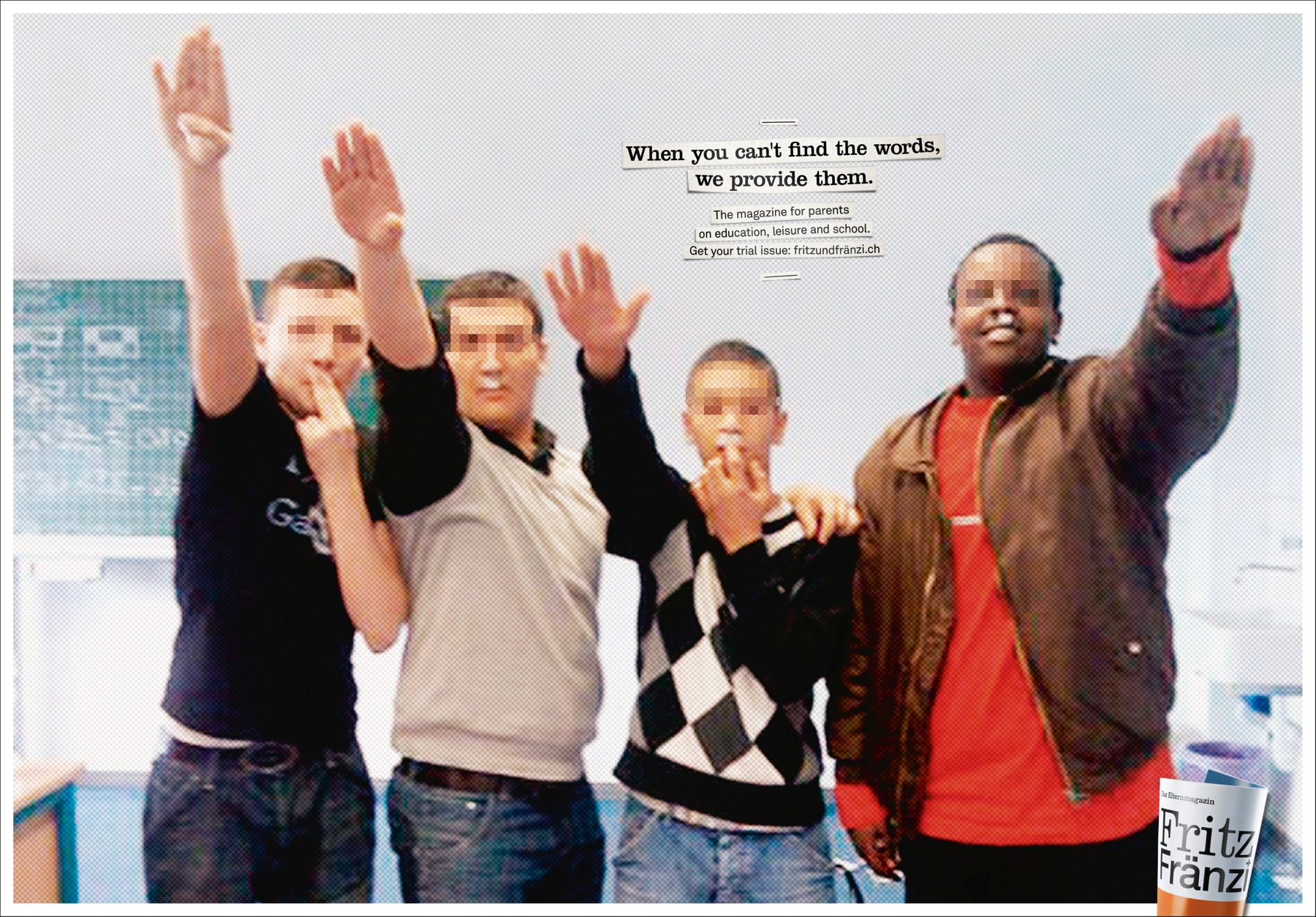 Рекламные постеры для немецкого журнала Fritz + Fraenzi , созданные швейцарским агентством Jung Von Matt, шокировали родителей. На одной из картинок изображены две практически голые шестнадцатилетние девочки, снимающие себя на камеру. Рекламный слоган гласит: «Когда вы не находите слов, мы предоставляем их».