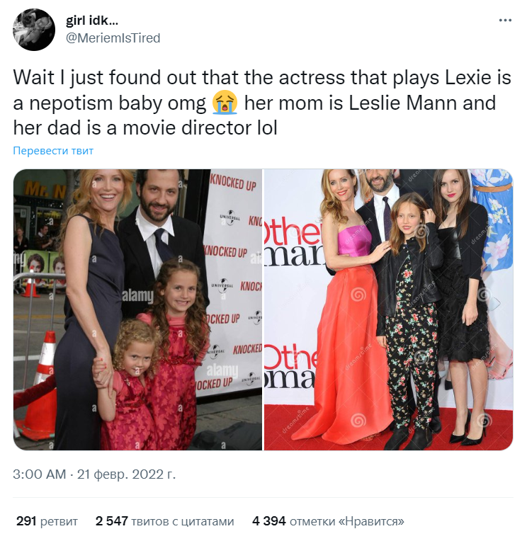 Само понятие «непо-бейби» завирусилось в сети в начале этого года. Тогда поклонница сериала «Эйфория» опубликовала пост в Twitter, где поделилась своим удивлением: она узнала, что актриса Мод Апатоу (сыграла Лекси) — дочь голливудских звёзд Джадда Апатоу и Лесли Манн, то есть «непо-бейби». Потом появились другие посты в духе: «А я не знал, что такой-то/такая-то — сын/дочь такого-то/такой-то», — затем тренд перешёл на Reddit и на другие площадки.