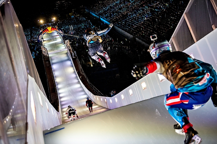 Еще один запоминающийся проект бренда, на котором стоит остановить внимание - соревнования по скоростному спуску на коньках Red Bull Crashed Ice