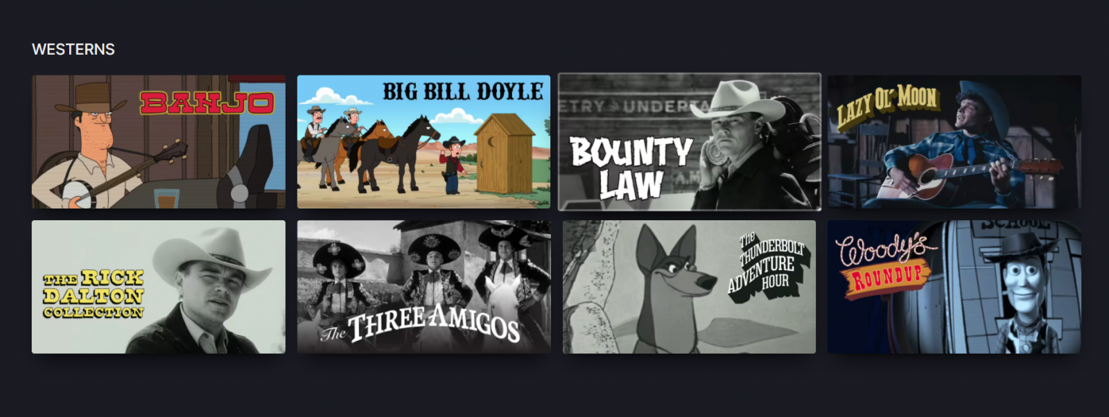 На платформе представлены гангстерский фильм Angels with Filthy Souls («Ангелы с грязными душами»), который смотрел главный герой фильма «Один дома», сериал Mac & C.H.E.E.S.E., в котором снялся Джоуи из «Друзей», и фильмография Рика Далтона, героя «Однажды в Голливуде» Квентина Тарантино.