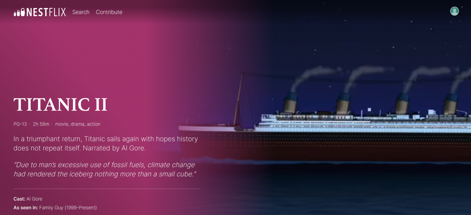Как и на Netflix, на шуточном сайте фильмы и сериалы представлены по жанрам, к каждой картине добавлен синопсис, кадры и рекомендации, а также информация о том, в каком реальном фильме или шоу изначально появилась фейковая лента. Пользователи могут предложить шоу, которого еще нет на сайте, через специальную форму.