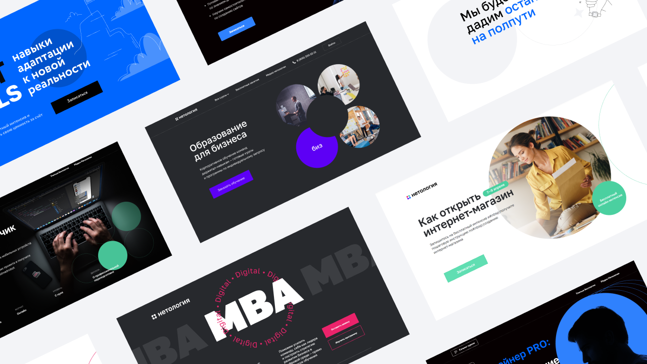 Общий стиль «Нетологии» сильно поменялся: стал трендовым. Компания прошла большой путь, и привычный визуальный стиль уже не отражал все новые направления обучения. С помощью ребрендинга мы смогли сделать «Нетологию» снова актуальной, в ней хочется учиться. Мне нравятся те визуальные решения, которые мы предложили: и цвета, и базовый графический элемент стиля — круг — подчеркивают цифровое направление компании.