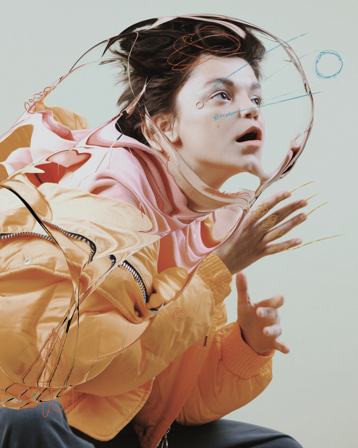 Чтобы реализовать все задумки, мы задействовали профессионалов, которые подходили под стилистику проекта: мы скооперировались с 3D-дизайнером Юлией Сальниковой и digital-артистом Rinatto Lbank, чтобы придать красок сессии.