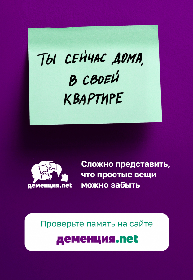 Кампанию разработал социальный проект Деменция.net совместно с креативным агентством RealWeb. В основе — привычные всем стикеры, которые мы почти ежедневно используем чтобы случайно что-то не забыть. Но для людей с деменцией стикеры — это не страховка от забытых дел, а единственный способ ориентироваться в жизни, когда никого нет рядом. Фразы «Тебя зовут Марина Степановна», «Потяни, чтобы открыть дверь», «Если забудешь, как доехать до дома, в кармане есть листок с адресом» — реальные цитаты из жизни людей с деменцией, ставшие визуальным и смысловым ядром всех коммуникаций.