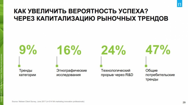 У Nielsen есть глобальная методология для выявления успешных запусков. Новинки должны достигнуть минимум $ 50 млн продаж за первый год выпуска, поддерживать уровень продаж первого года во втором, а также представлять собой новую ценность для потребителя (небольшие улучшения в рамках существующего продукта не считаются).