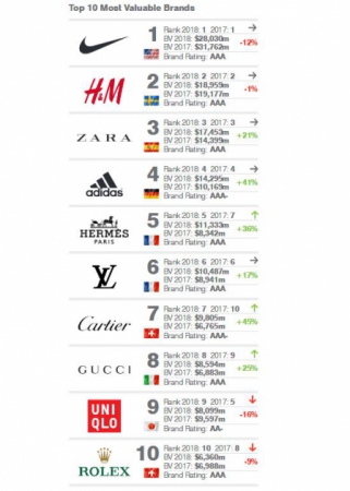 На рейтинге H&M отрицательно сказались многочисленные скандалы, случившиеся в течение последнего года. Расистские шутки и небрежное отношение к современному уличному искусству стоили шведскому ритейлеру 1,5 миллиарда долларов. Громкие кадровые перестановки в Louis Vuitton и Dior также привнесли серьезные негативные изменения в выручку компаний.