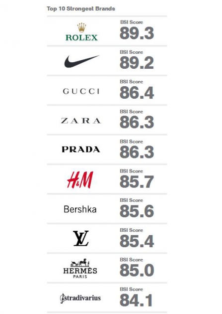 В ходе исследования аналитики оценивают силу бренда по шкале от 0 до 100. Изучив такие характеристики как эмоциональная связь, финансовые показатели и стабильность, эксперты отдали Nike уверенное второе место. Ритейлер уступил лидерство Rolex лишь одной десятой балла.