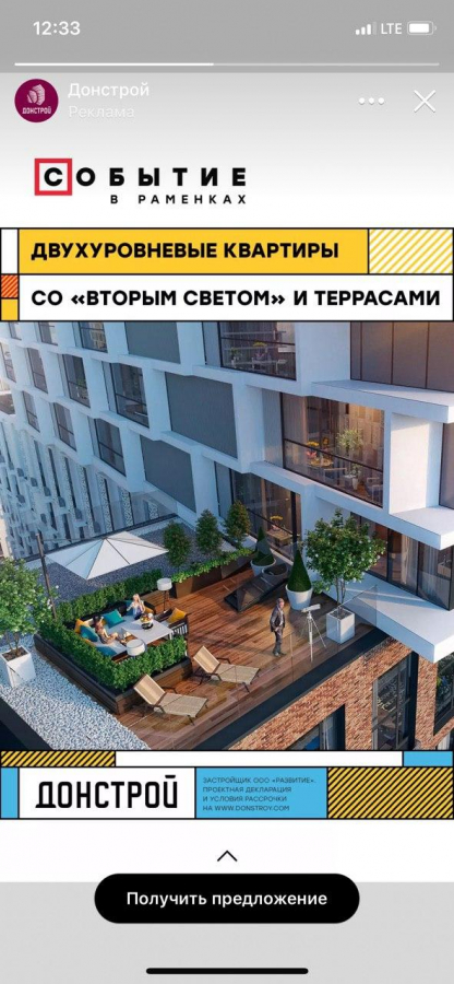 Вижу в сториз Facebook рекламу «Донстрой» — ЖК «Событие» в Раменках.