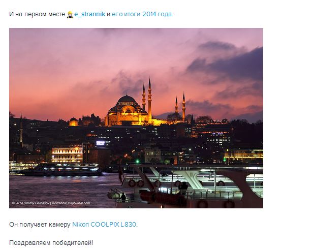 Компании Nikon пришлось извиняться за инцидент, связанный с конкурсом в Живом Журнале. Проект «Расскажи свою историю 2014 года» был запущен в официальном блоге бренда. Участники присылали снимки и боролись за главный приз — фотокамеру. Организаторы объявили результаты 14 января, но спустя несколько часов они были объявлены «неверными».