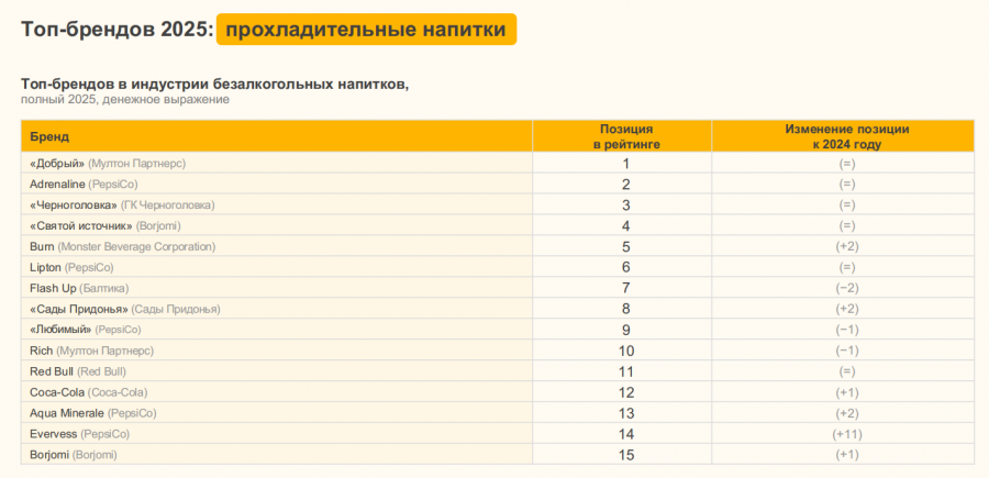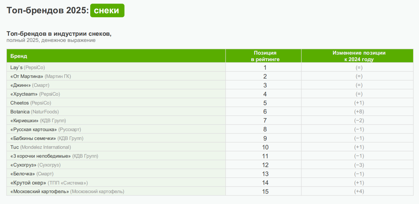 Компания Nielsen представила новый рейтинг, основанный на комплексном обзоре рынка товаров повседневного спроса в России. Аналитика построена на данных офлайн-продаж за период с января по декабрь 2025 года и не включает собственные торговые марки ретейлеров (СТМ).