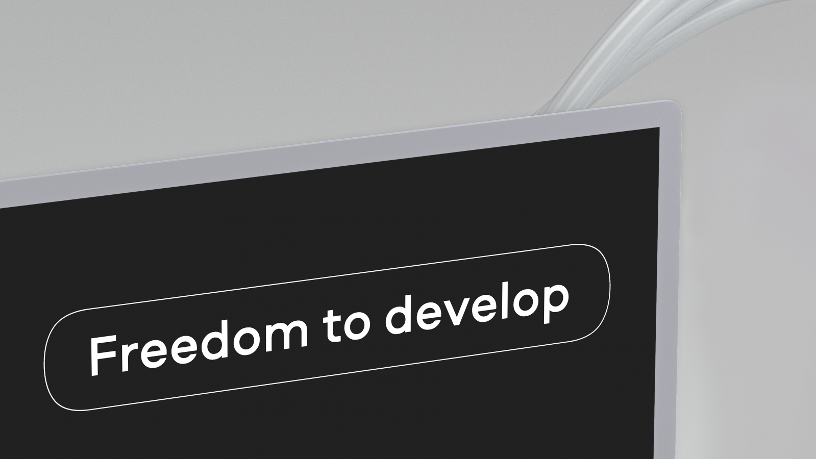 Вместе с заказчиком, включая представителей американского офиса, команда агентства в качестве слогана выбрала фразу «Freedom to develop». Такой формат сохраняет позицию компании как международную, а также понятен для целевой аудитории — российских разработчиков.