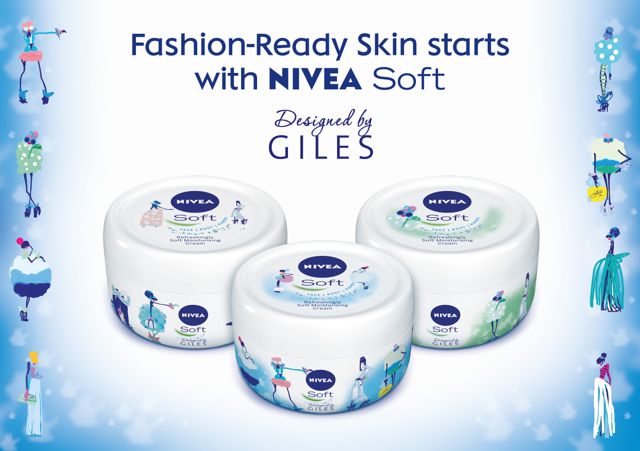 Бренд увлажняющего крема Nivea Soft в рамках подготовки к Лондонской неделе моды выпустил лимитированную серию упаковок, рисунки для которых разрабатывались британским дизайнером одежды Джайлзом Диконом (Giles Deacon) и агентством Space.