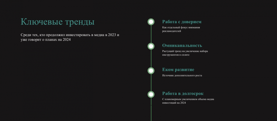 Большинство компаний смотрят в будущее с оптимизмом. Так, 78% брендов намерены вкладываться в медиа в 2024 году. 61% хочет увеличить медиа-инвестиции.
