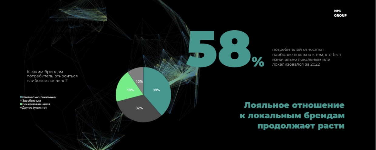 58% российских потребителей наиболее лояльно относятся к тем брендам, которые были изначально локальными или локализовались за 2022 год. 32% опрошенных относятся лояльно к зарубежным брендам. Таковы данные исследования NMi Group и Ассоциации коммуникационных агентств России (АКАР), которые представила исполнительный директор NMi Ирина Михеева на сессии «Бренды по любви: как медиа работают на доверие потребителей» в рамках Национального рекламного форума.