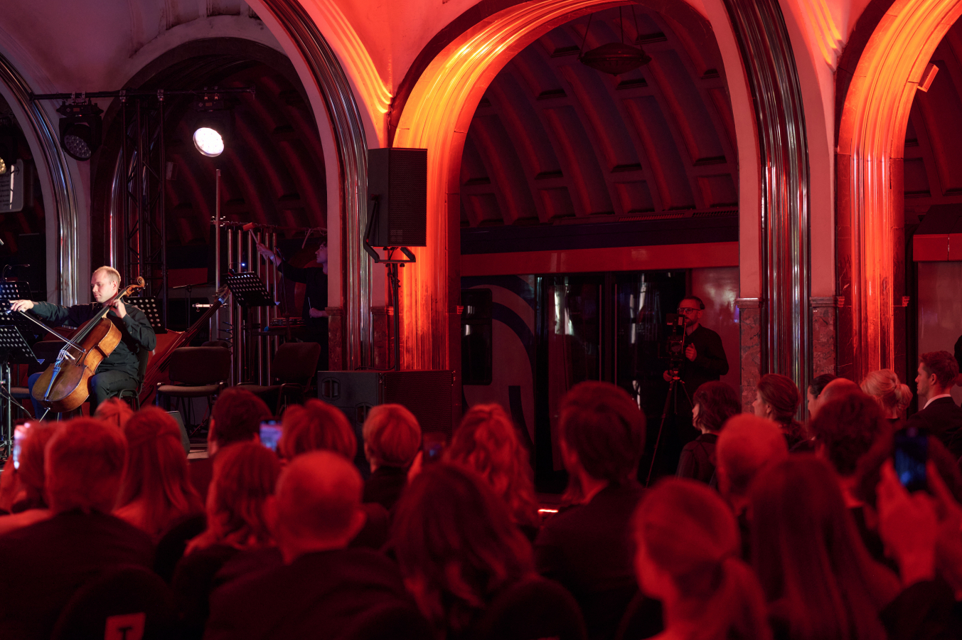 Мероприятие началось с приветственного коктейля в пентхаусе ЖК Vesper «Тверская», расположенном прямо над станцией метро «Маяковская». Vesper символически объединил два мира: городской пейзаж над землей и чарующие звуки музыки в подземке. После коктейля гости спустились на станцию, где под мозаичными панно Александра Дейнеки, выполненными Владимиром Фроловым, состоялся концерт оркестра musicAeterna под управлением Теодора Курентзиса.