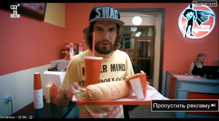 Внутри клипа встречаются вымышленные бренды: фастфуд ZQC, стиральный порошок Dusia, гигиенические прокладки «Котикс Ультраплюс». Первая часть ролика стилизована под рекламные вставки на YouTube, с полосой обратного отсчёта и кнопкой «Пропустить рекламу», которая потом превращается в «Рекламу нельзя пропустить». В середине герой вертится вокруг стиральной машинки, на которой стоит пачка весьма узнаваемого бренда. Ну а финал выглядит как настоящая реклама из 90-х, с разрезанием прокладок и трюками с водой.