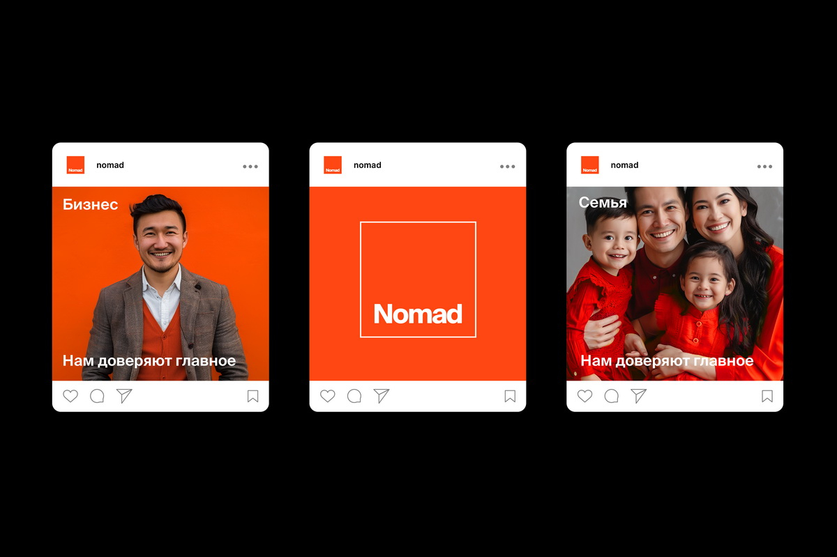 Агентство создало личность бренда и тональность коммуникации, основанную на трансляции опыта, менторстве, уверенности и заботе. В зависимости от типа коммуникации бренд может быть гибким в стиле общения, при этом сохраняя целостность. Главная задача заложенных смыслов — сделать Nomad синонимом словам «доверие» и «страхование».