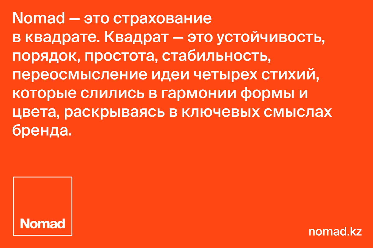 Казахстан — это страна с большим потенциалом, которая активно развивается. Очевидно, что в ближайшем будущем страхование будет играть гораздо большую роль в обществе и экономике. И хотелось бы, чтобы в потоке, который понесет эту сферу вверх, Nomad вырвался вперёд с помощью брендинговых инструментов.