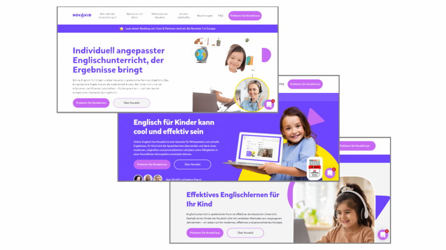 Под каждую мотивацию сотрудники команды маркетинга Novakid разрабатывали отдельный лендинг с CTA, чтобы закрывать конкретные потребности.