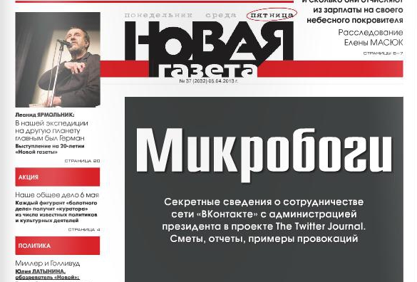 На третье место в рейтинге популярных общественно-политических изданий вернулась «Новая газета» (прирост 12,5%). В 1,5 раза увеличилась цитируемость в СМИ и социальных медиа. В основном, за счет публикаций о сборе подписей под петицией против «антимагнитского» закона и «Сбор подписей за роспуск Госдумы». «Независимая газета» и «Гудок» испытали спад цитируемости, из-за чего они оказались на 5-м и 6-м местах соответственно.