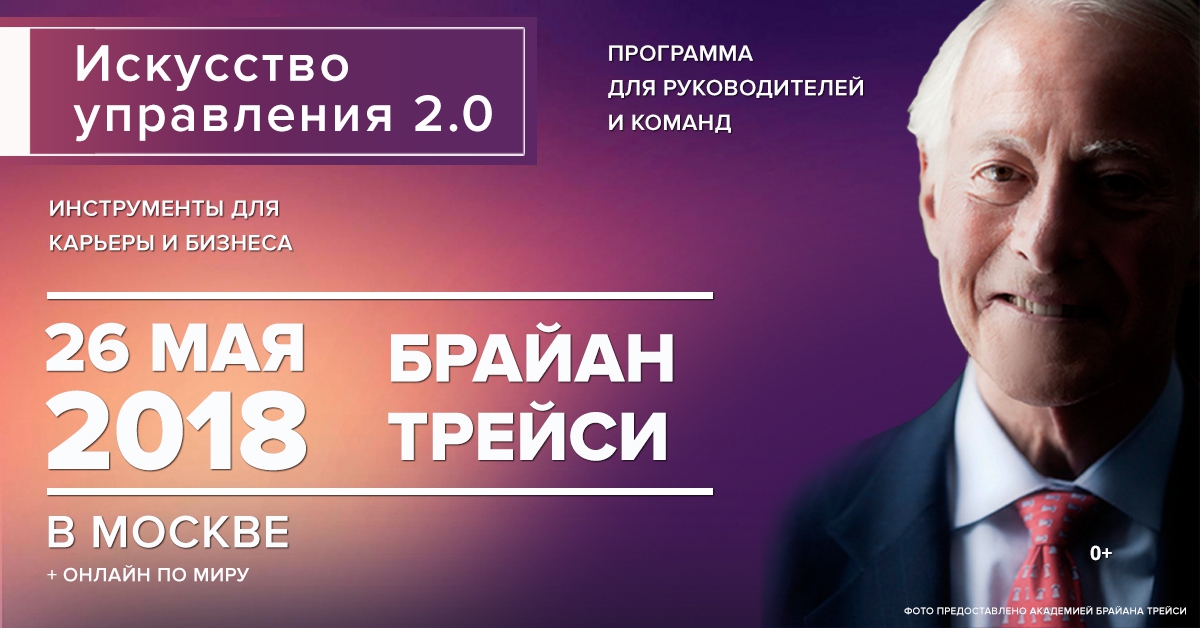 26 мая 2018 года в Москве эксперт № 1 в мире по успеху и развитию бизнеса, Брайан Трейси впервые в России проведет новую авторскую программу «Искусство управления 2.0: система действий и инструментов для руководителя и его команды».