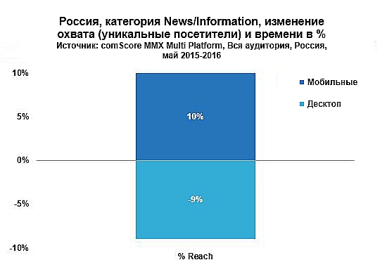 Компания comScore опубликовала результаты исследования, посвященного потреблению мобильного интернета в России. Выяснилось, что охват аудитории в категории News/Information в России находится на девятом месте среди других категорий. Десктопная аудитория данной категории снизилась на 9% за последний год, а мобильная, наоборот, выросла на 10%.