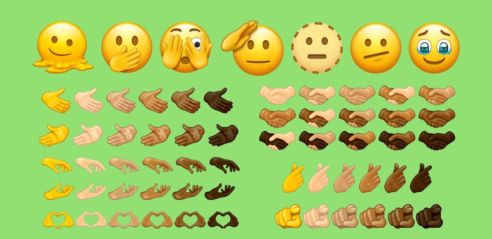 В предварительный список вошли шесть эмодзи с лицами. Среди них актуальное этим летом плавящееся лицо; салютующий эмодзи, который сможет заменить в чатах «F»; лицо с открытыми глазами, прикрывающее рот. Уже существует подобный эмодзи с закрытыми глазами, который выглядит улыбающимся — новый значок подойдет для более серьезных ситуаций.