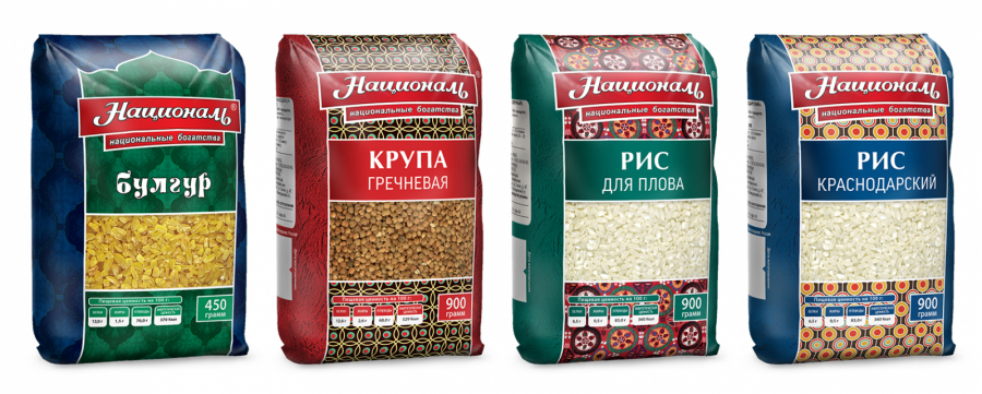 «Националь» — наш фронт-бренд, на который приходится до 70% продаж круп, к тому же именно он звучит в названии холдинга. Дизайн упаковок базового ассортимента, включающего рис «Краснодарский», рис «Золотистый», гречку, манку и другие традиционные крупы, ни разу не менялся с момента выхода на рынок в 2008 году. Поэтому сделать рестайлинг «Националь» — гиперответственная и крайне сложная задача, на решение которой у нас ушёл год.