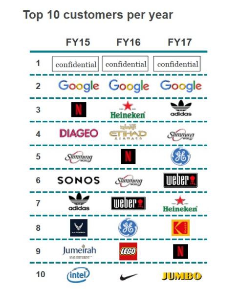 Преимуществом MediaMonks является прямая работа с брендами — 83% выручки за 2017 год группе обеспечили клиенты, с которыми она взаимодействует без посредников в виде рекламных агентств.