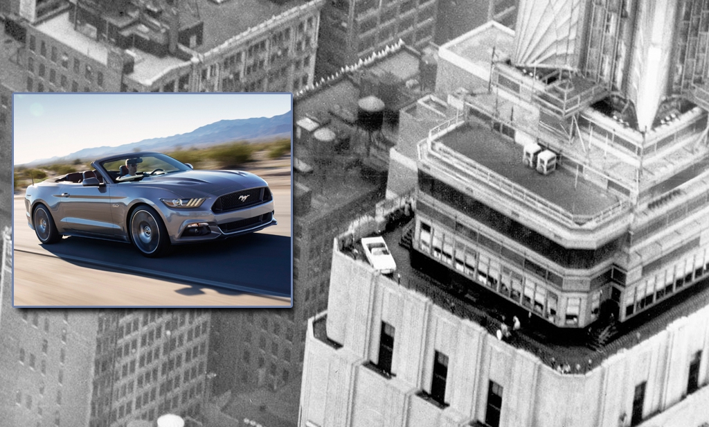 В 1931 году, когда состоялось открытие Эмпайр Стейт Билдинг как самого высокого здания в мире – титул, который это здание удерживало на протяжении около 40 лет, – никто не мог себе представить, что однажды в лифтах небоскреба будут поднимать автомобиль. Но в 1965 году опытный образец Mustang был разделен на три основные части, чтобы обеспечить возможность перевозки автомобиля в лифтах.