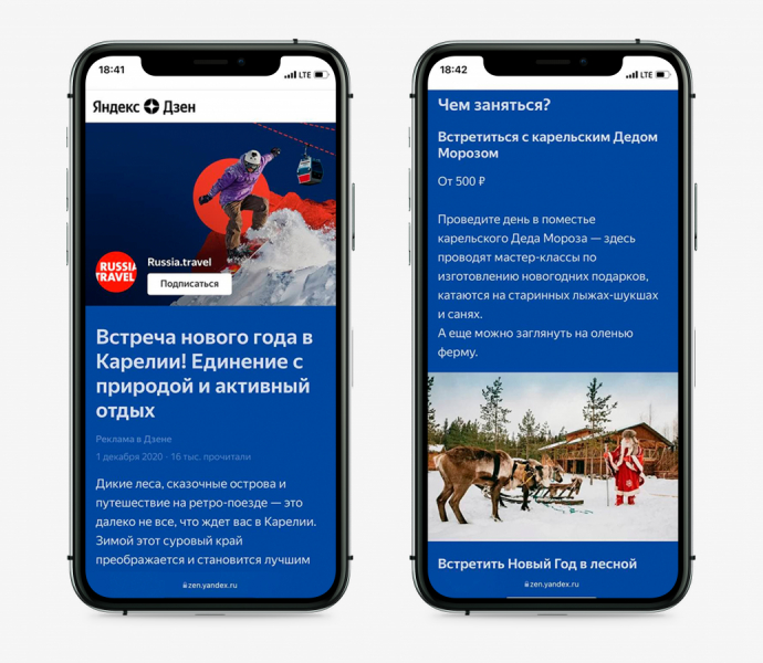 Портал Russia Travel рассказывает, как интересно и увлекательно путешествовать по России. Перед новогодними каникулами команда выпустила статью «Встреча нового года в Карелии! Единение с природой и активный отдых», чтобы продать небольшой тур.