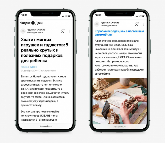 Компания Ugears производит движущиеся деревянные конструкторы: модели машин и другой техники, насекомых, животных. К Новому году она выпустила статью «Хватит мягких игрушек и гаджетов: 5 реально крутых и полезных подарков для ребёнка». В ней рассказали о моделях, которые помогут увлечь ребёнка конструированием и пригодятся для учебы. Например, с помощью кликера он научится считать и понимать математику, а курвиметром измерит расстояние между городами без гаджетов и интернета.