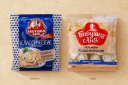 В основе новой дизайн-системы — аппетитная фудзона, матовая фактура упаковки и фоновый паттерн с текстурой бумаги для выпечки, отсылающие к крафтовости. Сдержанная цветовая палитра разработанного решения акцентирует внимание на бренд-зоне упаковки. В категории «вареники» отстройка с помощью цвета дополнена вкусовой отстройкой.