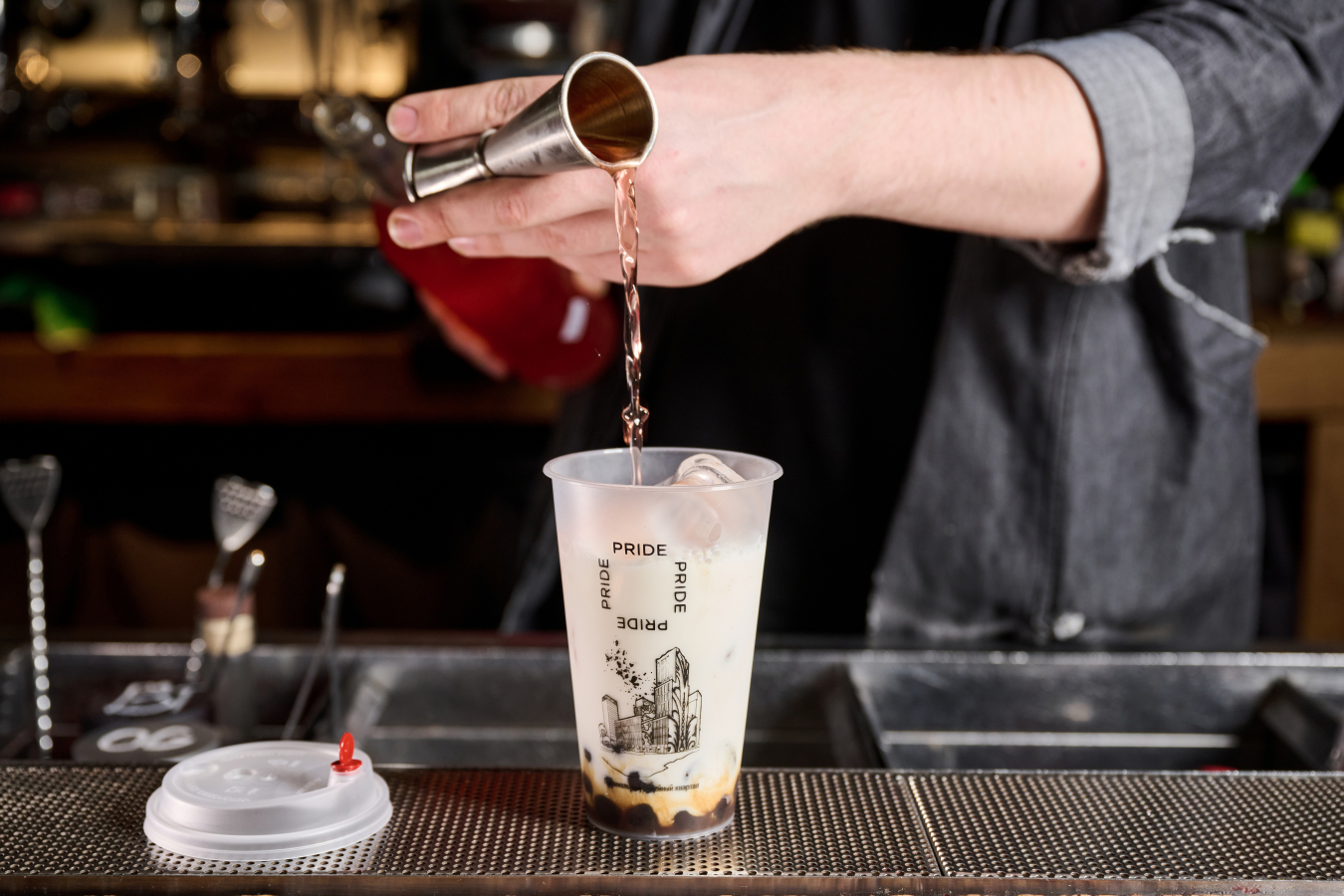 Агентство разработало дизайн в стилистике ресторана для несколько тысяч стаканчиков для кофе и коктейлей. На каждый стаканчик нанесли логотипы PRIDE и рисунок с изображением ЖК.