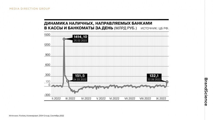 По данным Brand Science Snapshots, только 10% опрошенных поменяли способ хранения сбережений после объявления о частичной мобилизации. Тогда как в первые две недели марта 2022 года этот показатель был на уровне 25%, а в период с марта по июнь — 33%.