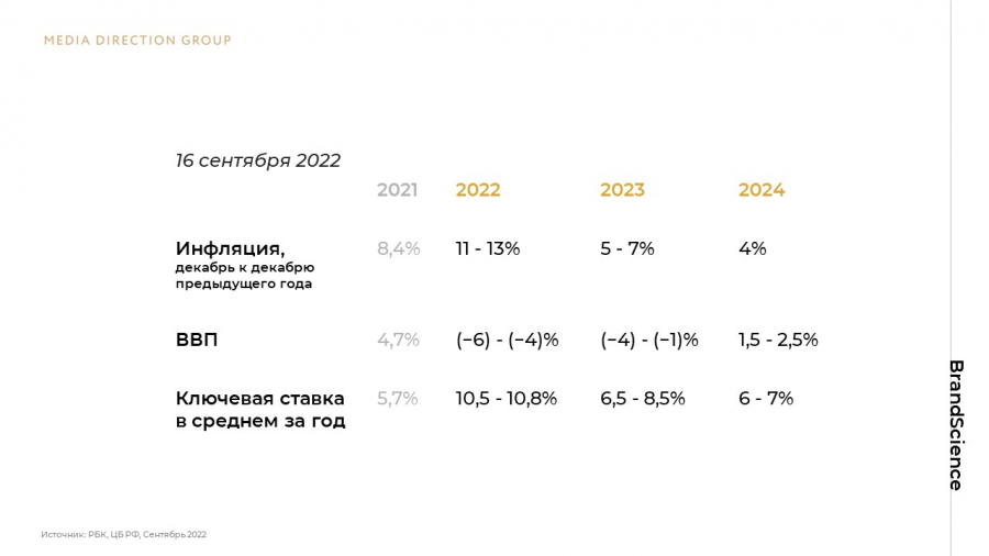 В начале сентября эксперты Центробанка полагали, что экономика быстро восстановится, а Минэкономразвития прогнозировал снижение ВПП. Но после объявления частичной мобилизации сценарий изменился. Как сейчас ведёт себя потребитель и чего ожидать бизнесу, проанализировала команда агентства BrandScience в новом выпуске MDGContext.