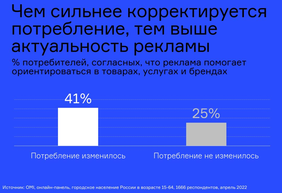 Среди тех, кто воспринимает рекламу как ориентир на рынке, 41% отметил, что потребление изменилось, а четверть опрошенных сообщила, что потребление осталось на прежнем уровне.