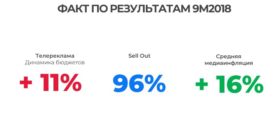 Объем проданного рекламного инвентаря (sell out) по итогам всего 2018 года НРА оценивает в 96%. При этом телесмотрение за девять месяцев упало на 6% вместо ранее прогнозировавшихся 2%.