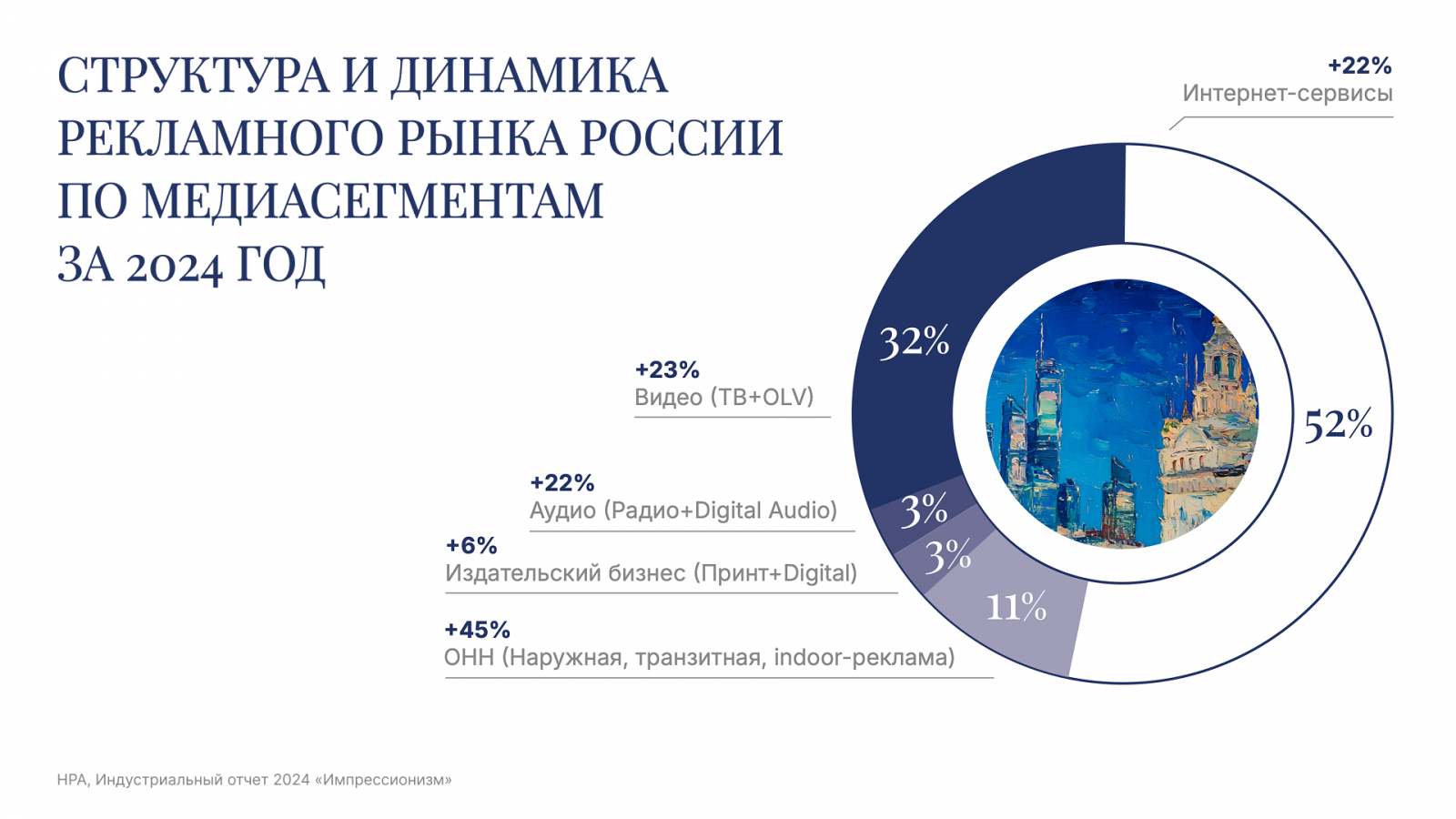Национальный Рекламный Альянс (НРА) представил ежегодный индустриальный отчет, оформленный в стилистике импрессионизма как метафоре восприятия быстро меняющейся реальности. Авторы материалов акцентируют внимание на необходимости трансформации подходов к коммуникации в условиях стремительных изменений медиасреды, технологий и потребительского поведения. Sostav делится основными инсайтами и тезисами отчета.