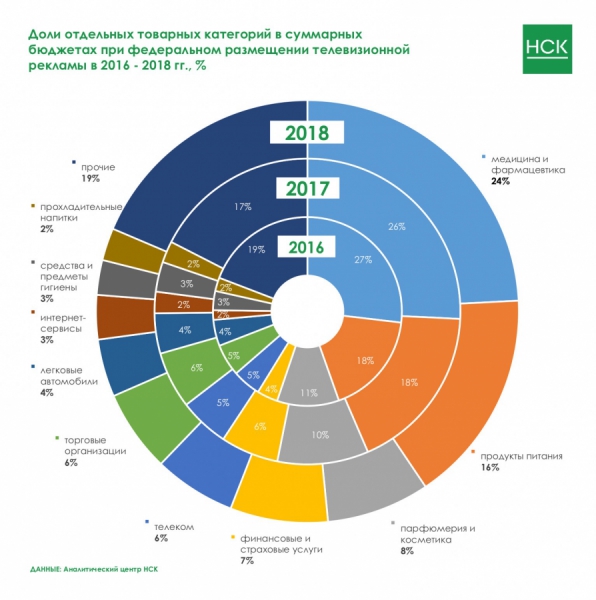 Также важно отметить, что происходит внутренняя трансформация телерекламного рынка. В 2018 году заметно изменилась структура и поведение рекламодателей. Рассмотрим подробнее на примере федеральной телерекламы.