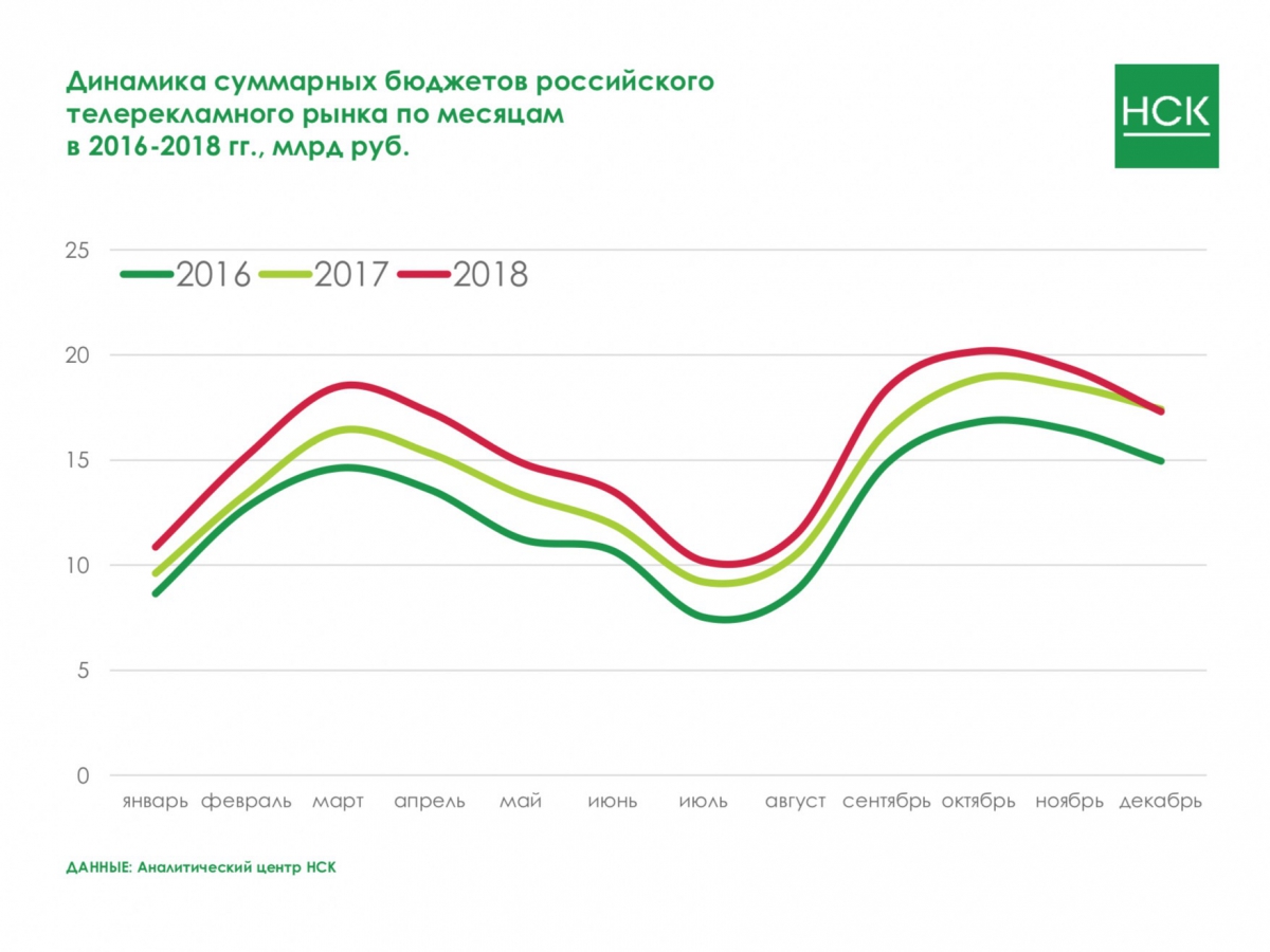 В 2018 году телеканалы привлекли 187 млрд рублей российских рекламодателей. Телевидение стало вторым медиасегментом после интернета по объему рекламных бюджетов. При этом рост телерекламного рынка по сравнению с прошлым годом составил 9,5%. О том, что стоит за этими цифрами — в материале Александра Карпушкина, эксперта Аналитического центра НСК.