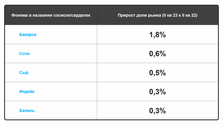 Отдельно эксперты обращают внимание, что «Баварские» и халяльные сосиски — единственные два нейминга, доля которых на рынке непрерывно растёт квартал к кварталу с начала 2022 года.