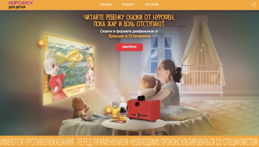 Запущенный осенью 2017 года проект «Нурофен сказки» — интерактивная платформа, задачей которой было выстроить сильную эмоциональную связь между аудиторией и брендом и сформировать имидж продукта, которому доверяют мамы на протяжении нескольких поколений.