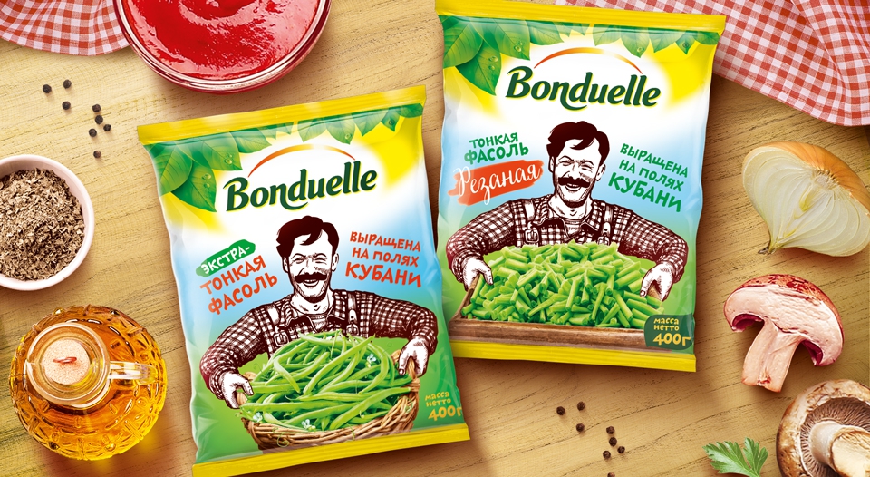 Выбранное визуальное решение помогло новой замороженной фасоли выделиться в торговых сетях.