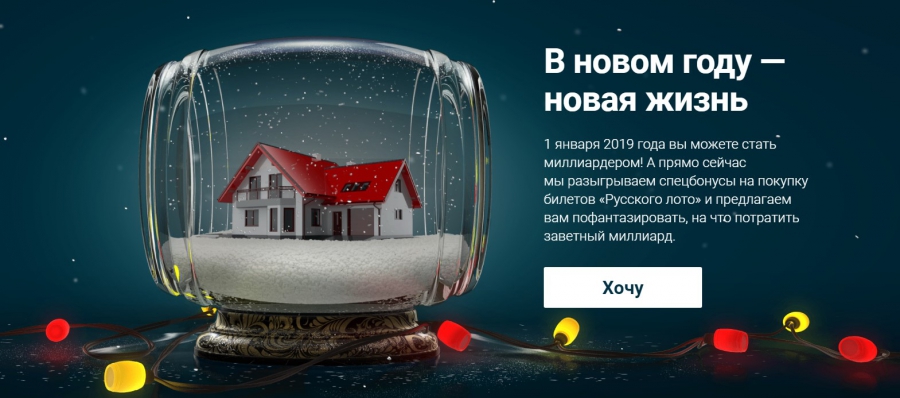 В поддержку кампании также запущен промосайт, разыгрывающий спецбонусы на покупку билетов «Русского лото». 1 января 2019 года в лотерее «Русское лото» разыгрывается миллиард рублей, обладателем которогоможет стать один человек, или его разделят несколько победителей.